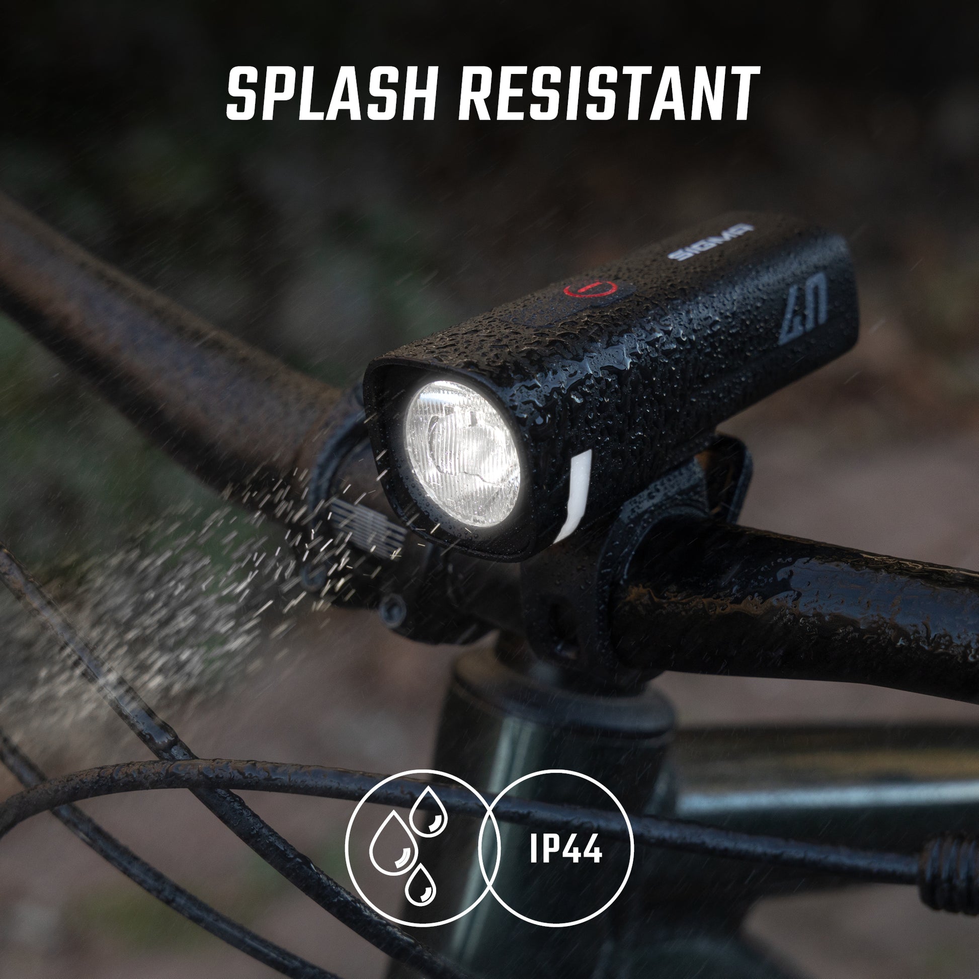 Water resistance: IP44 (protected against splashing water) ;