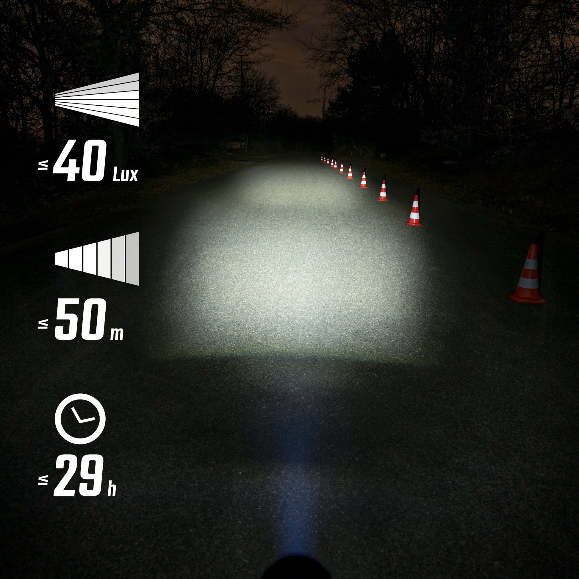Light output: 40 Lux (15 Lux in Eco mode) ;