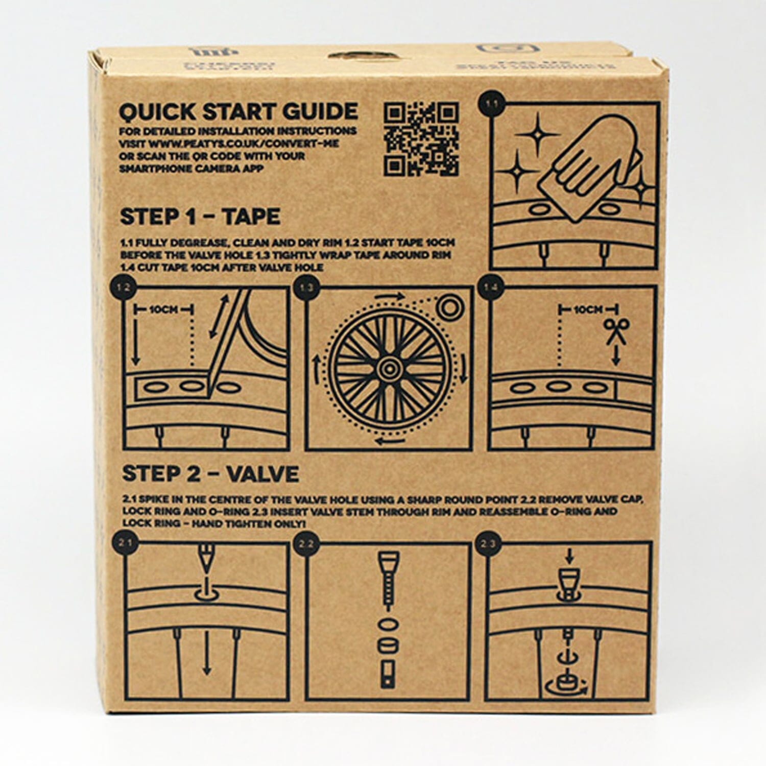 Visit Tubeless conversion kit from Peaty includes everything you need for a fully optimized tubeless configuration: Peaty RimJob rim tape, Tubeless valves and preventive liquid. If you spend more time on the bike and less time fixing punctures, this configuration is perfect.