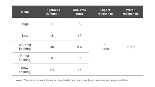 Doté de détection intelligente du freinage, d’un allumage/extinction automatique et d’une batterie longue durée jusqu’à 45 h, le CL01 combine praticité et fiabilité. Sa batterie Li-polymère rechargeable USB-C, son indicateur SMART et son étanchéité IPX6 garantissent des performances constantes, quelles que soient les conditions météorologiques.