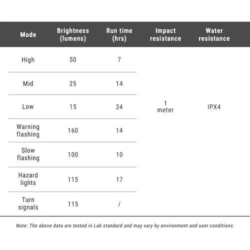ANT+ and Bluetooth connectivity enable you to synchronize the lighting with various devices such as Garmin or Wahoo, adding a modern approach to your cycling equipment.