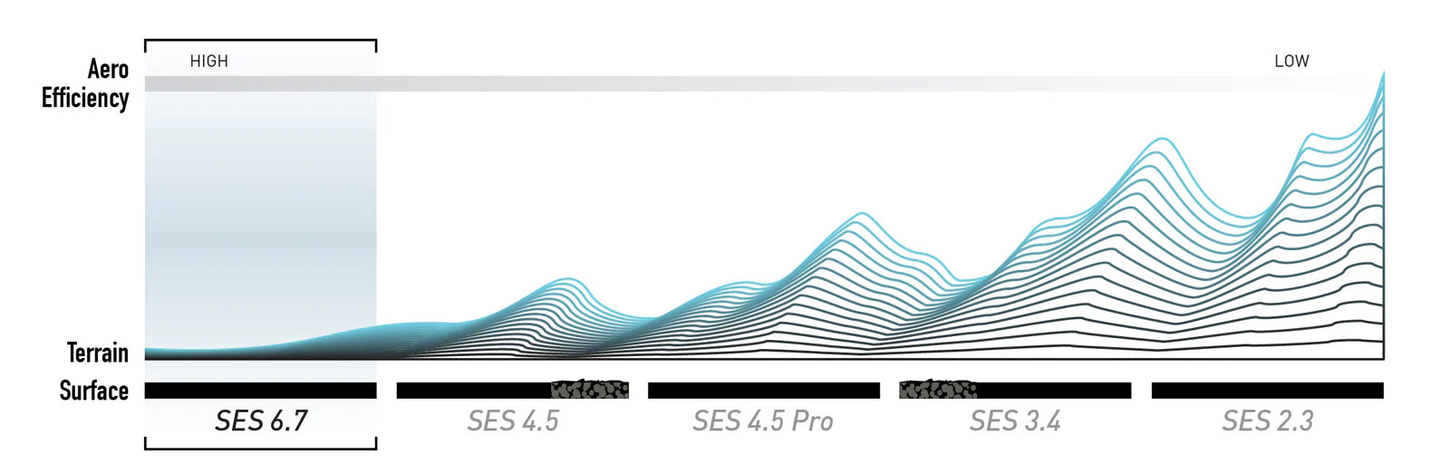 Designed with the help of CFD, wind tunnel tests and extensive field experience, the ENVE SES 6.7 Rear Wheel achieves an ideal compromise between efficiency and control. Its high-volume carbon construction enhances stability at high speeds, while keeping the weight down to under 1,500 g per pair for crisp acceleration and smooth running.