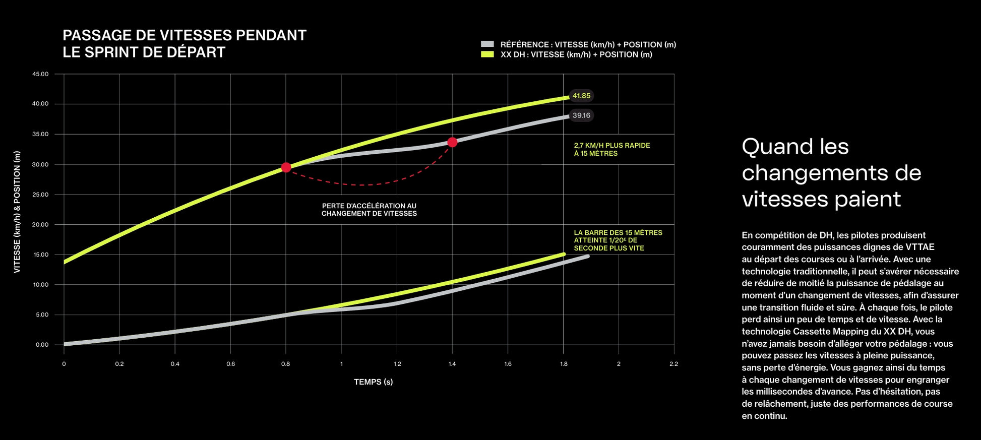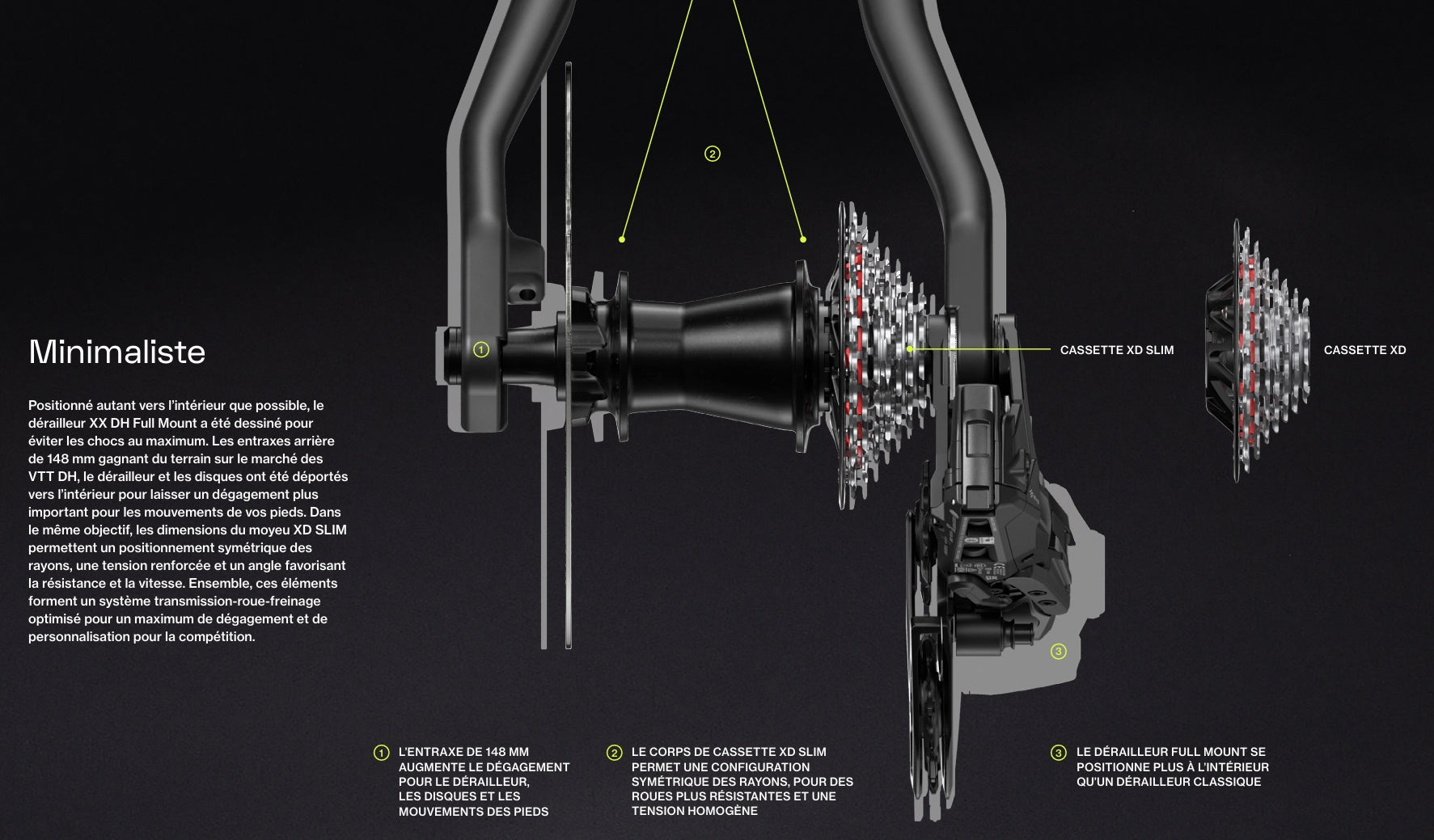 Le système AXS permet des changements de vitesses extrêmement précis et un poste de pilotage épuré. Couplé avec la technologie Cassette Mapping, ce dérailleur fonctionne en parfaite harmonie avec la cassette DH T‑Type, garantissant un passage de vitesses fluide et fiable dans toutes les conditions, du départ au sprint final. Les plaques de protection, le segment externe du parallélogramme et la chape Inline sont conçus pour être facilement réparables ou remplaçables, assurant durabilité et entretien simplifié.