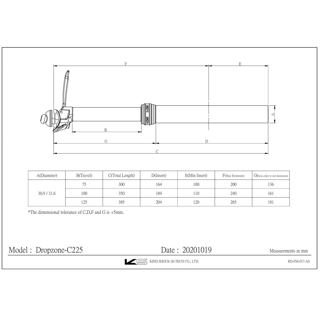 KS KIND SHOCK DROPZONE Telescopic Seat Post