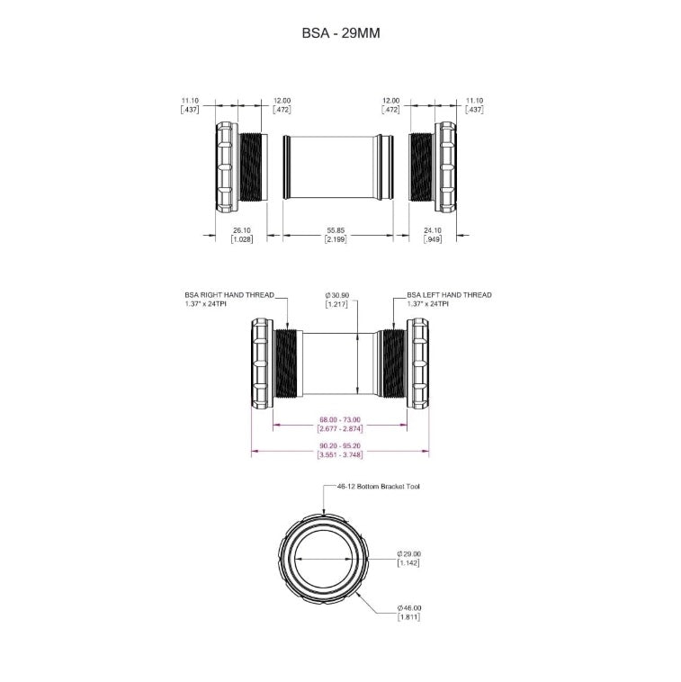 Largeurs de Boîtier Supportées : 68–73 mm (manchon interne réglable), options 83 mm et 100 mm via manchon dédié non fourni