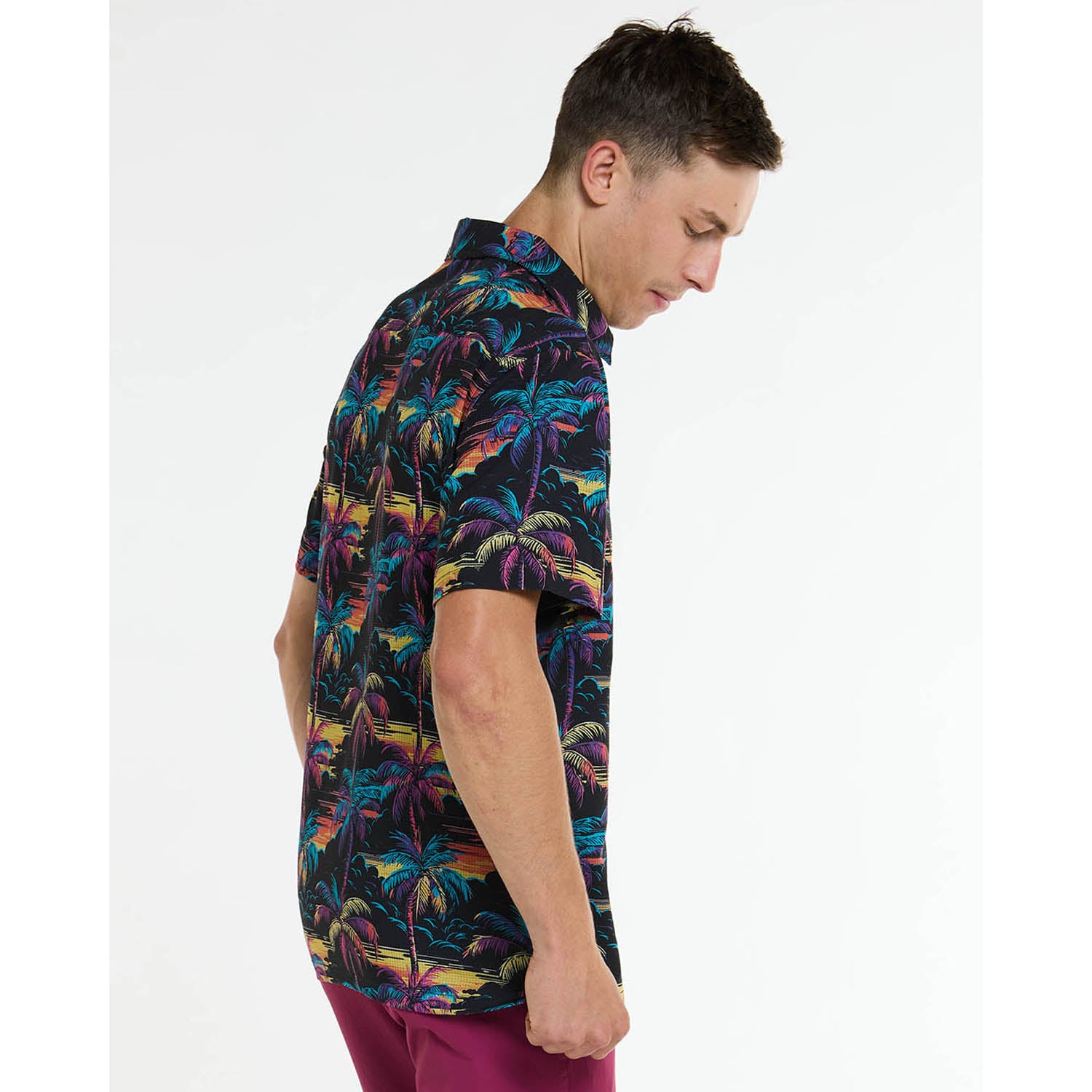 Det lette, åndbare polyester/spandex-stof sikrer en fremragende fugttransport, så du forbliver tør og komfortabel selv på de varmeste dage. Den afslappede standardpasform giver stor bevægelsesfrihed uden at gå på kompromis med udseendet.
