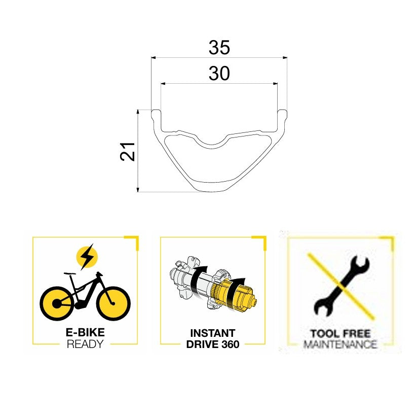 De er designet til at være klar til elcykler og opfylder de nye krav til cykler med elektrisk assistance. MAVIC har udviklet en holdbar, højtydende løsning uden at gå på kompromis med pålideligheden. Den indvendige bredde på 30 mm giver optimal stabilitet og er ideel til moderne dæk, der giver bedre trækkraft og øget kørekomfort.