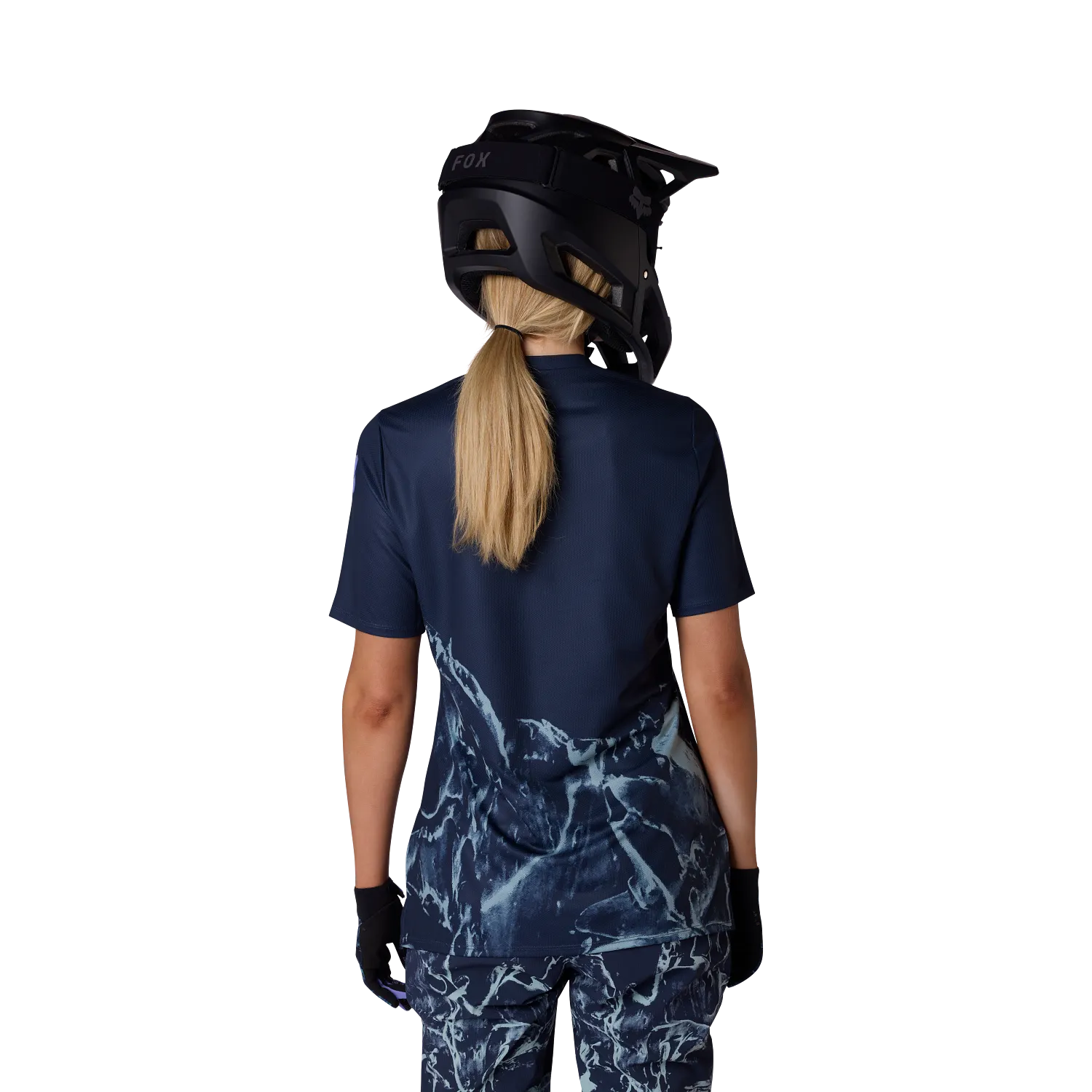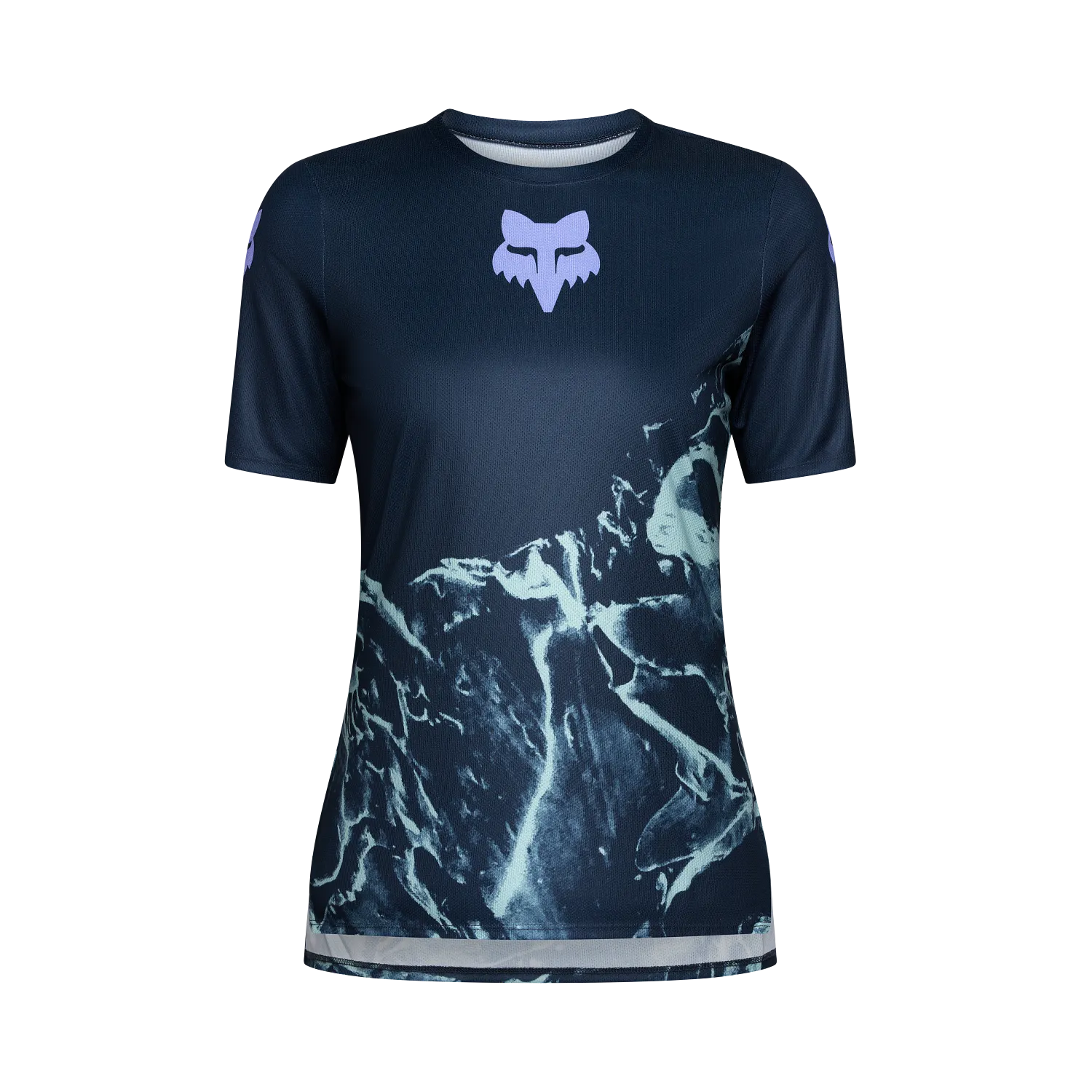 FOX RANGER PRINT Womens-trøjen kombinerer fordelene ved et teknisk stof med komforten ved en klassisk T-shirt. Den er fremstillet af 100 % genbrugspolyester og er en miljøvenlig løsning for mountainbike-entusiaster.