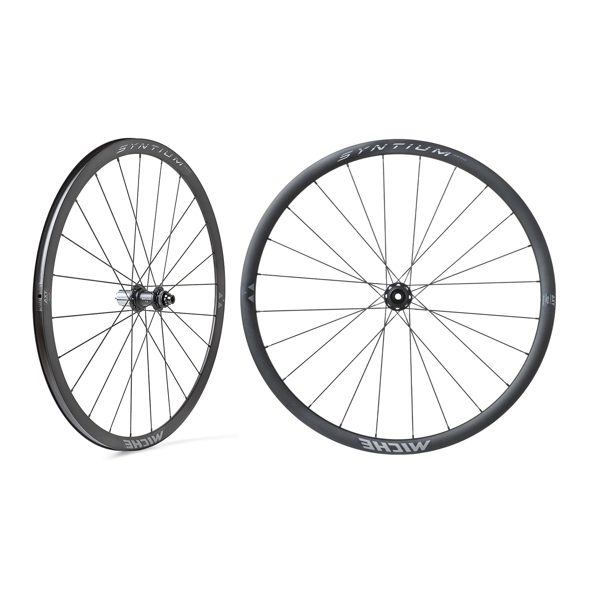 Disse hjul har en let aluminiumsfælg med en asymmetrisk profil bagpå og eger af Sapim forstærket med rustfrit stål, som ikke kun giver dem stor stivhed, men også sikrer deres lange levetid og pålidelighed. Baghjulets nav er udstyret med en højtydende frihjulskrop på et aluminiumsnav specielt til brug med Centerlock-skivebremser.
