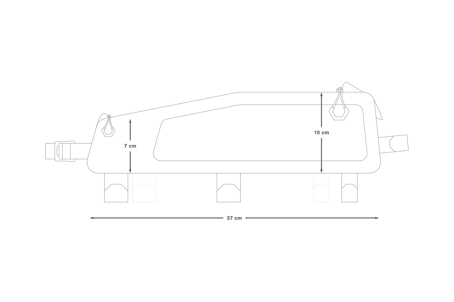 Fixation : 3 sangles Hypalon pour le top tube, 1 sangle Hypalon pour la tige de direction