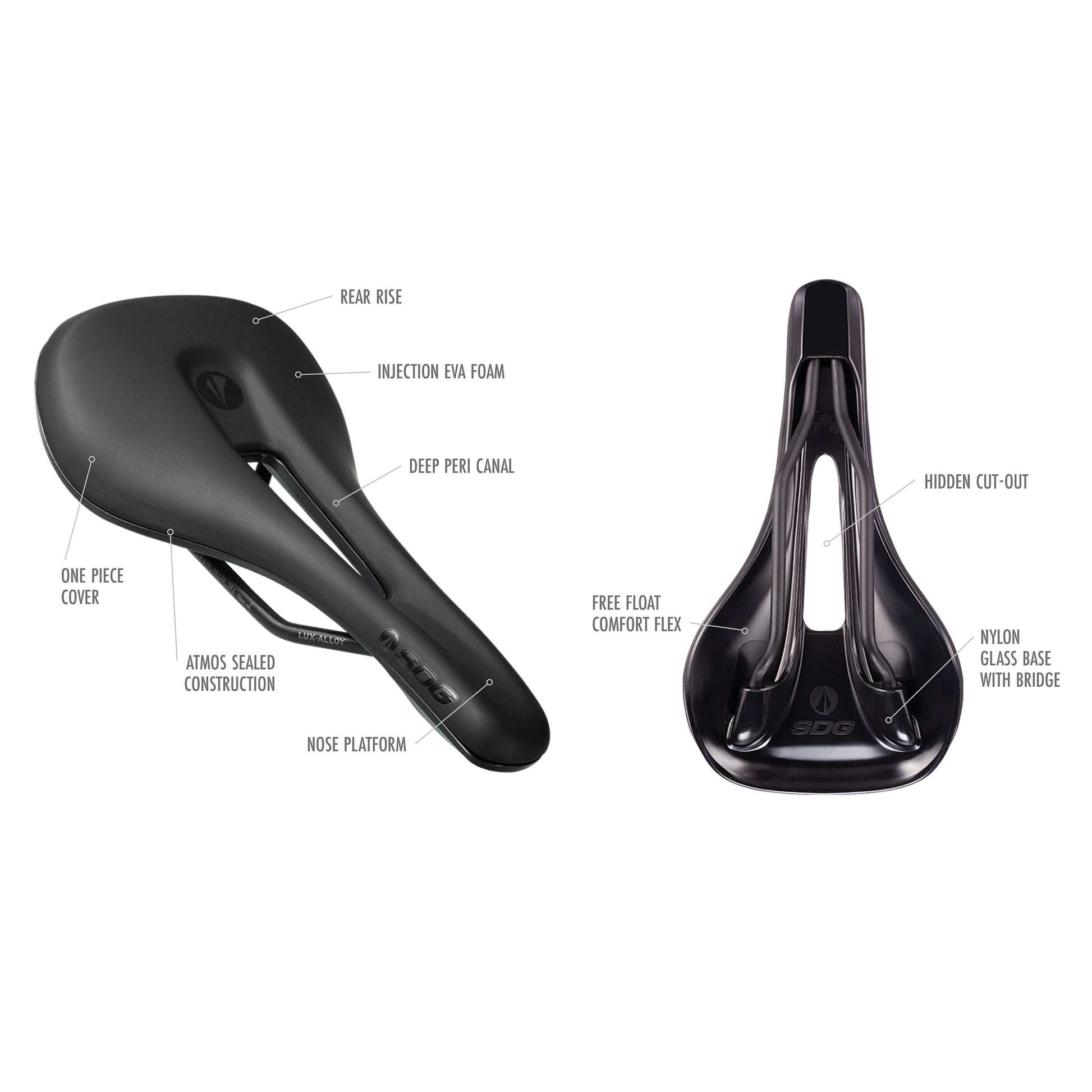 SDG BEL-AIR V3 OVERLAND-sadlen kombinerer dristig æstetik med banebrydende tekniske funktioner for at give optimal komfort til Trail-, XC- og Gravel-ryttere. Den er designet til lange dage i sadlen og har en fuld udskæring for at lette trykket og et sænket design bagpå, som ikke ses på andre Bel-Air V3-modeller, hvilket forbedrer komforten i den aggressive position uden at gå på kompromis med det elegante udseende.